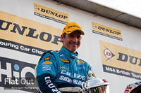 Jason Plato on the podium after winning BTCC race 3 at Knockhill